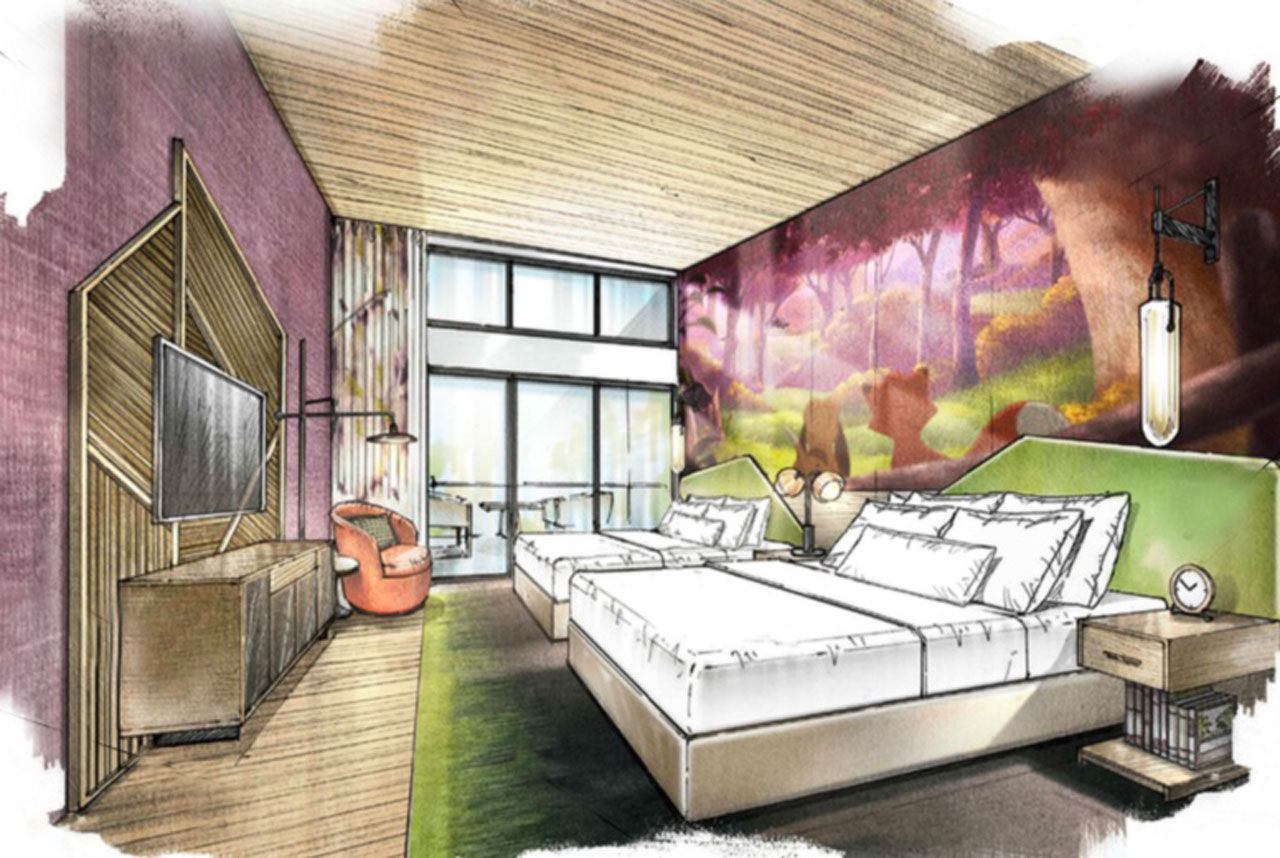 The renderings below are from the original announcement of Reflections, but it hasn’t been confirmed if the same theming will be present in the resort’s new vision. A restaurant inspired by The Princess and the Frog and room themes inspired by Bambi, Brother Bear, The Fox and the Hound, and Pocahontas designs were originally announced.